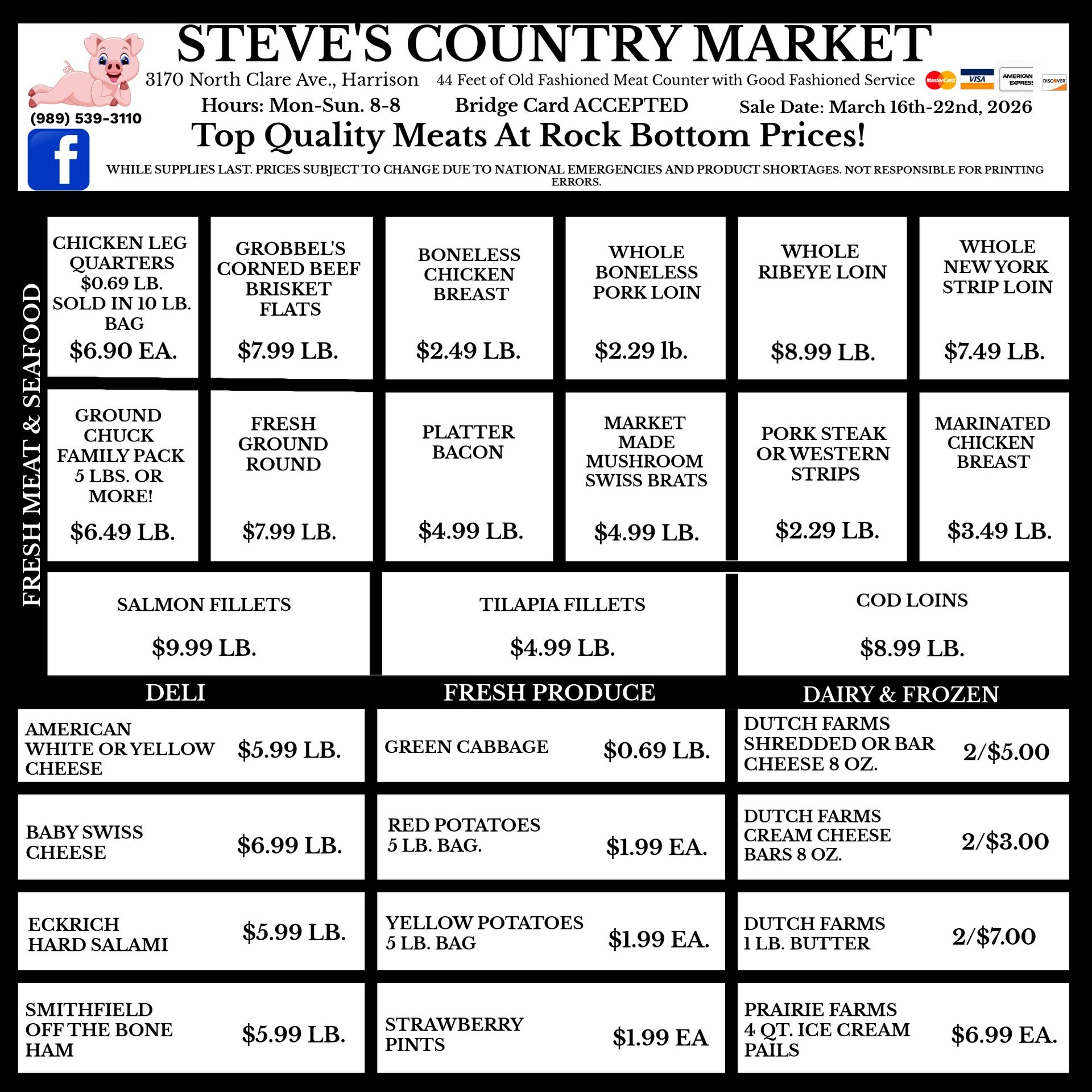 Featuring a full line grocery, dairy, produce, beer, wine and lotto PLUS 44 feet of Old Fashion Full Service Meat Case.